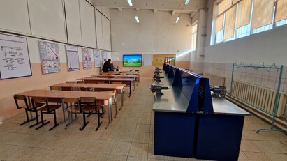 12 жұмыс үстелі, құрал-саймандарға арналған металл шкафтар орнатылды. Шеберхана техникалық оқыту құралдарымен, тақырыптық стендтермен жабдықталған
